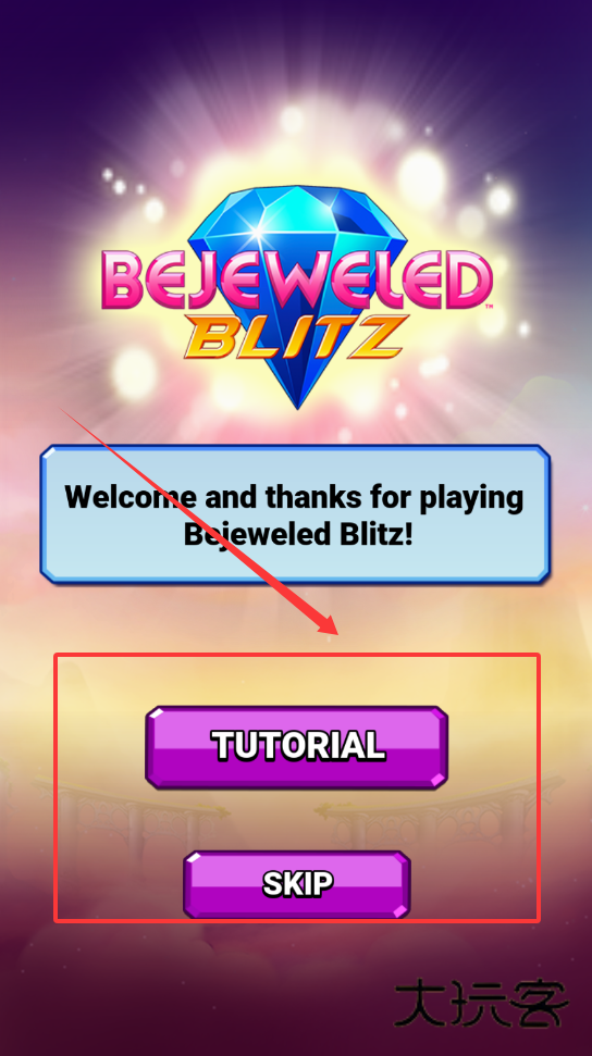 2、进入游戏后,你会看到欢迎界面,上面有“教程”和“跳过”两个选项。如果你是新手,建议点“教程”跟着学习,这样能更快掌握基础玩法。