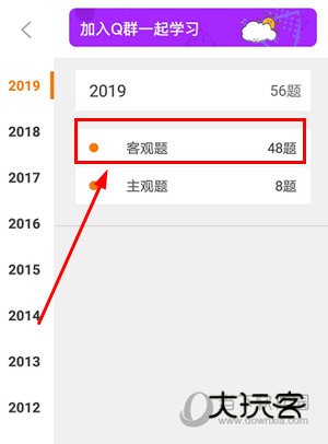2、然后可以选择之前历年的真题了,想要准备选择题的考生选择“客观题”选项。