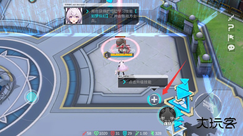 4、积累足够经验后及时升级技能选项,通过强化能力掌握对战主动权优势进行使用。