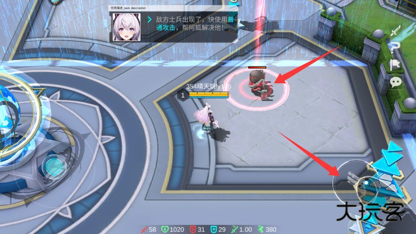 3、点击右下角攻击按钮发动普通攻击操作,配合技能连招对敌人造成有效持续伤害。