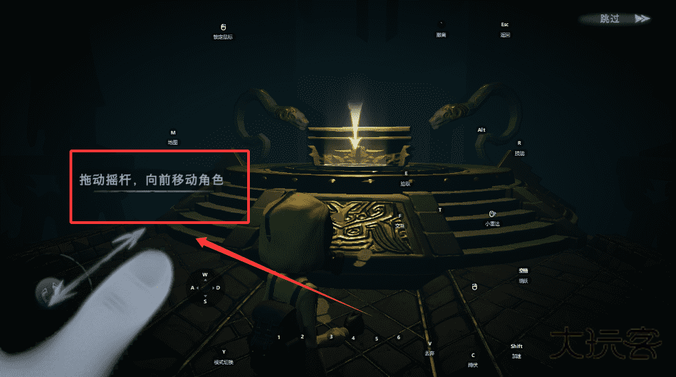 2、在游戏内控制角色移动,主要依靠拖动左侧的虚拟摇杆,向前持续拖动就能让角色前进,这是探索场景和完成任务的基础操作。