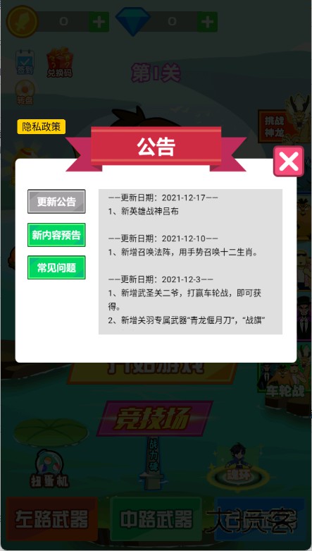2、进入游戏主界面后,查看“公告”或“活动”栏,了解版本更新、福利领取等信息。