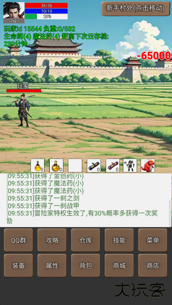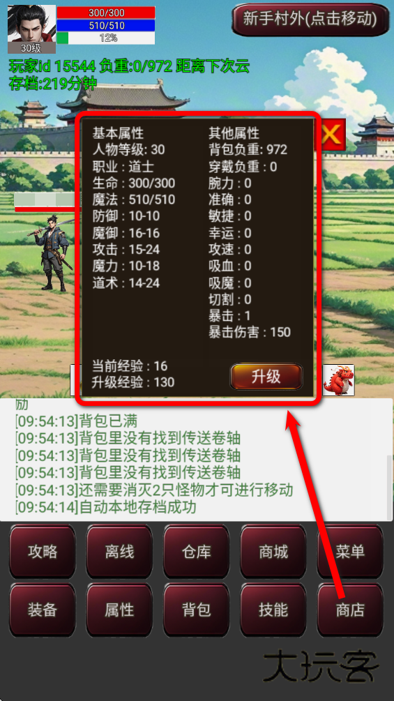 〔人物固定1000点经验升一级,每5级加一点攻击,每7级加一点防御,同时也加负重可以带更多的药水〕有高防装备就去后面的图刷