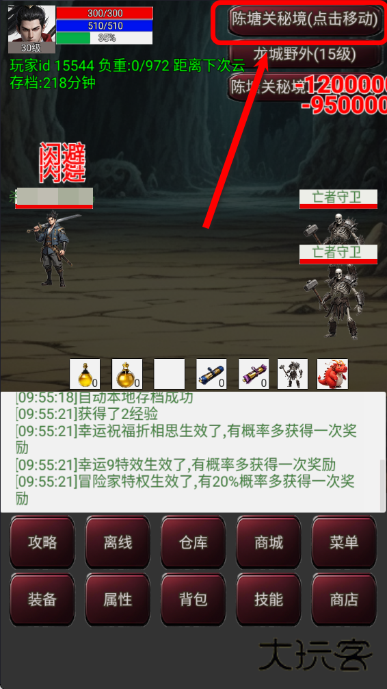 开始打怪升级 点击右上角〔点击移动〕开始刷猪,换地图都是在这里去点击的