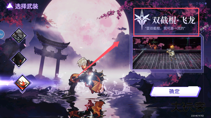 3、继续查看"双截棍·飞龙"武装的相关信息,了解其战斗特性与适用场景。确定选用后完成装备流程,至此已成功配备了三套不同特点的武装系统。