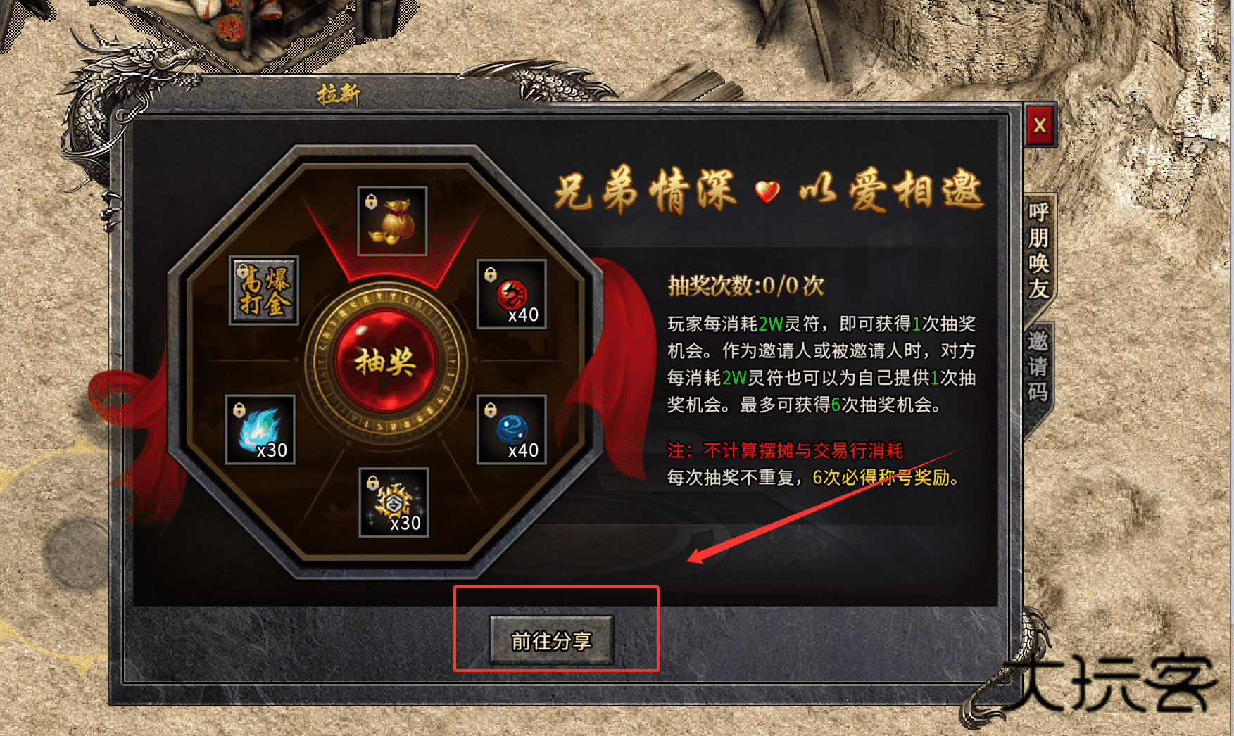 1、想要参与兄弟情深抽奖活动的话,你需要先了解规则。消耗灵符是获得抽奖机会的主要方式。