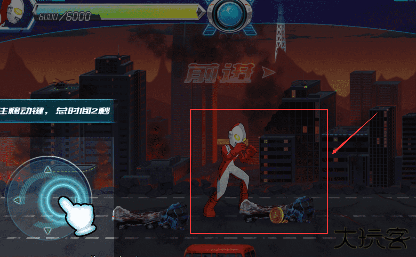 2、十分简单的操作玩法,玩家只需要控制奥特曼移动和使用技能即可