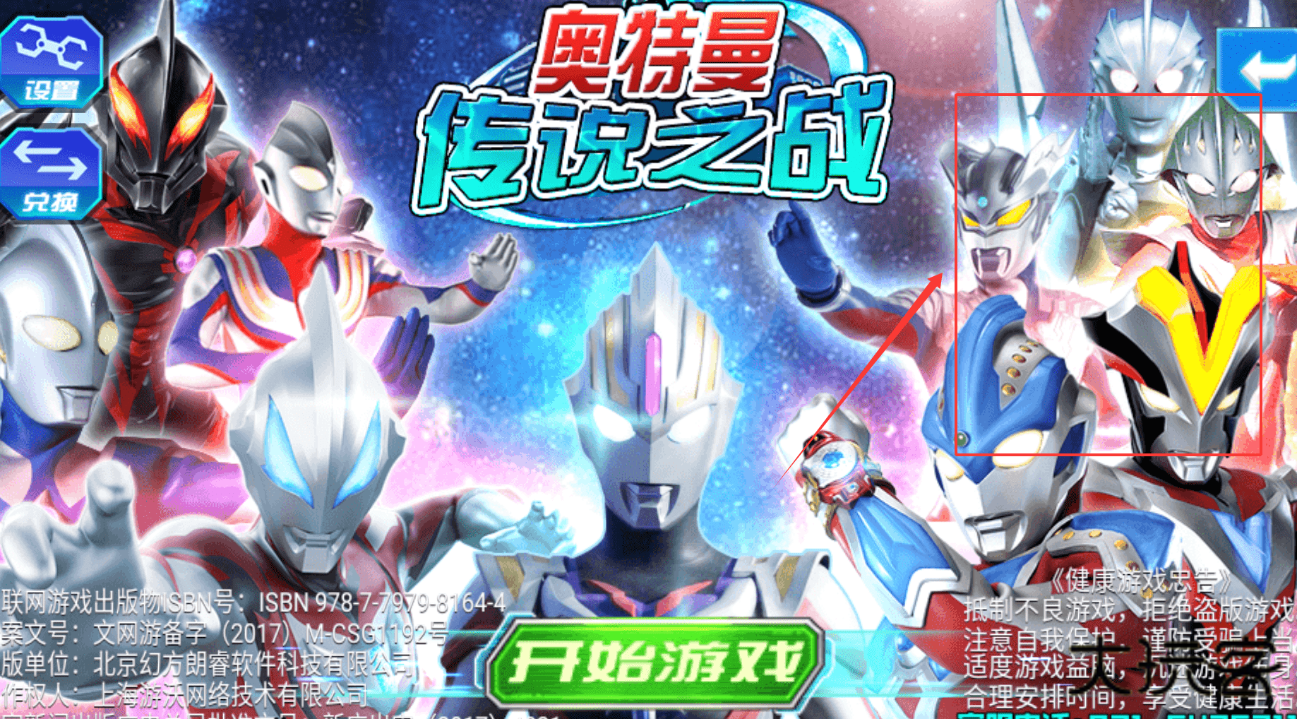 2、在软件的其他部分,你会看到“奥特曼传说之战”等游戏元素和健康游戏忠告。