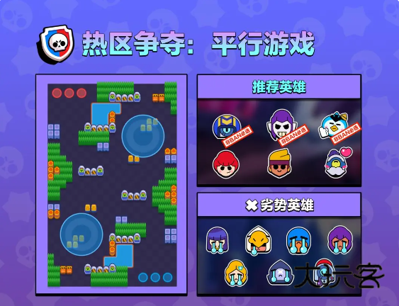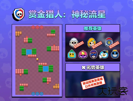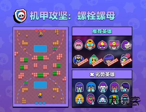 接下来就要详细剖析游戏最最最重要的内容了,就是模式与英雄。模式在这里不做太多赘述,毕竟这些最基本的东西还是得靠自己摸索,一个攻略帮不了你成为大神,只能让你少走一点弯路。模式分为宝石,荒野决斗,足球(最基本的三个模式)金库,热区,机甲,赏金。而每过一段时间都会出现特殊活动:天选之战,首领之战,机甲入侵和打恐龙。荒野乱斗的快乐源泉地图编辑器我待会再说。