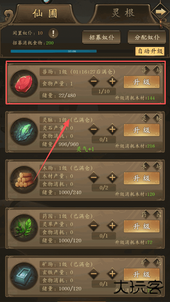 1、进入游戏后,你可以先点击“仙圃”模块,在这里管理兽场等资源建筑以完成任务。
