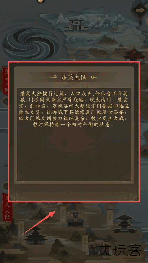 4、通过界面下方副本、探索等功能或地图切换,可以前往蓬莱大陆等区域进行游历。