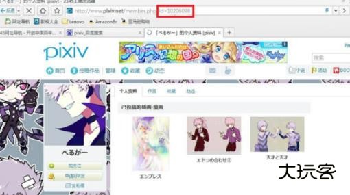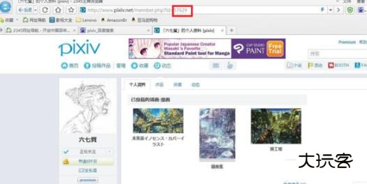 4、在网址中把随机选择的画师的id删了换成你要找的画师的id。敲回车键(enter键)。