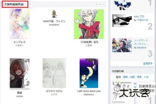 然后你进入自己的主页后,往下拉看到这个有一块很大的地方是《大家的新作品》,随便点一个人的进去。