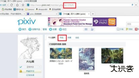 5、就成功进入你要找的画师的主页,就可以查看你喜欢的画师上传的作品,还可以关注他。