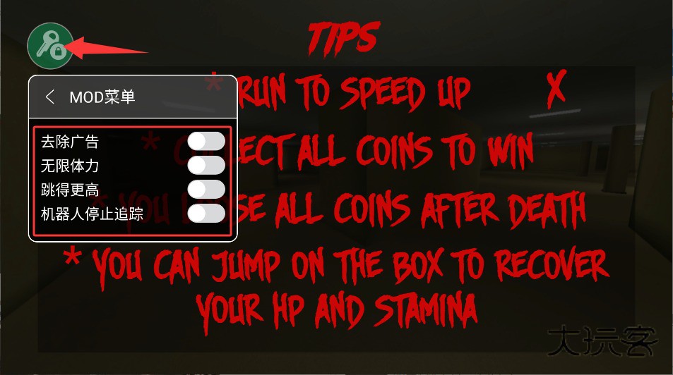 3、所以游戏中的核心玩法是逃离和脱困,以及找到其中的硬币完成其中任务。