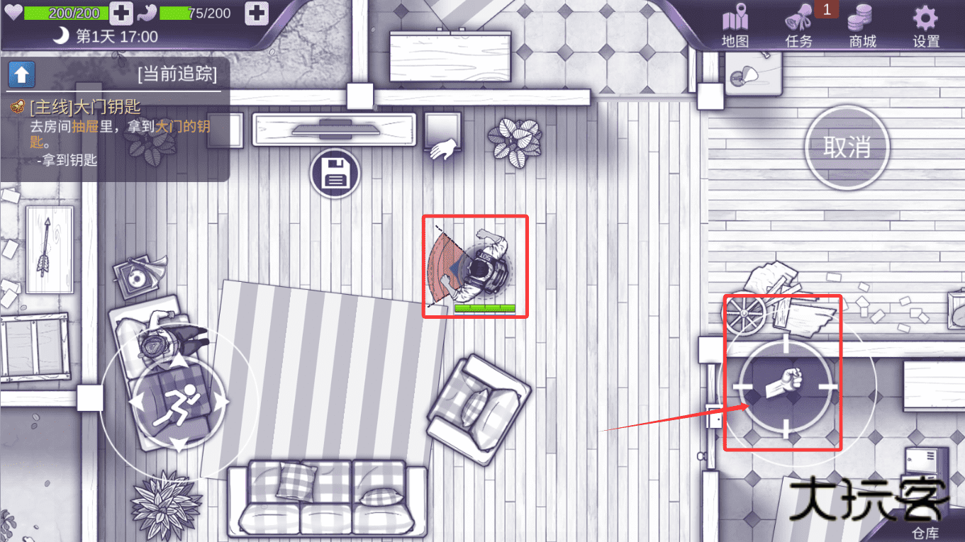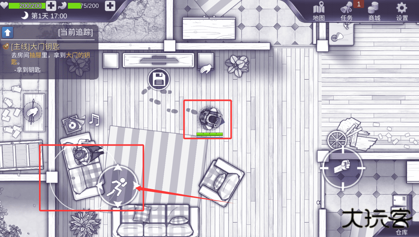 2、游戏场景中,操作角色移动主要依靠屏幕左下角的虚拟方向摇杆,通过手指在摇杆区域滑动,可控制人物朝指定方向行进。