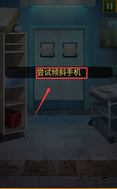 第一关:这关中只有简单的一个装了两个绿色液体的柱子,还有一个类似电梯的红绿开关按钮。我们只需按下这个按钮,就能开门。