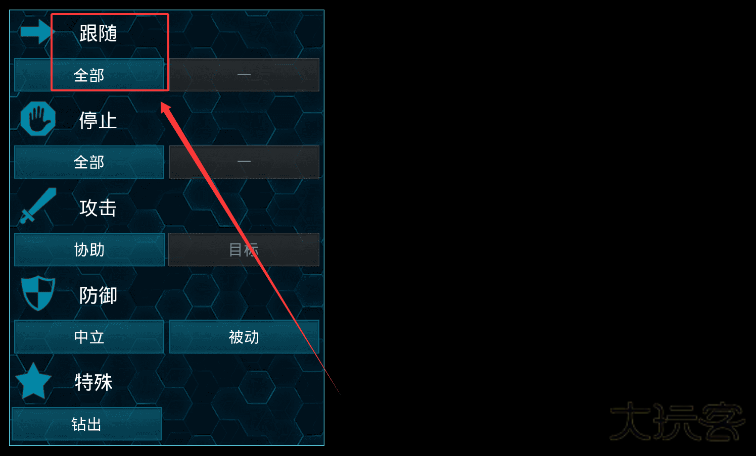 3、伙伴指令界面很实用呢。跟随和停止用来控制同伴移动,点击后面的全部就能批量操作。