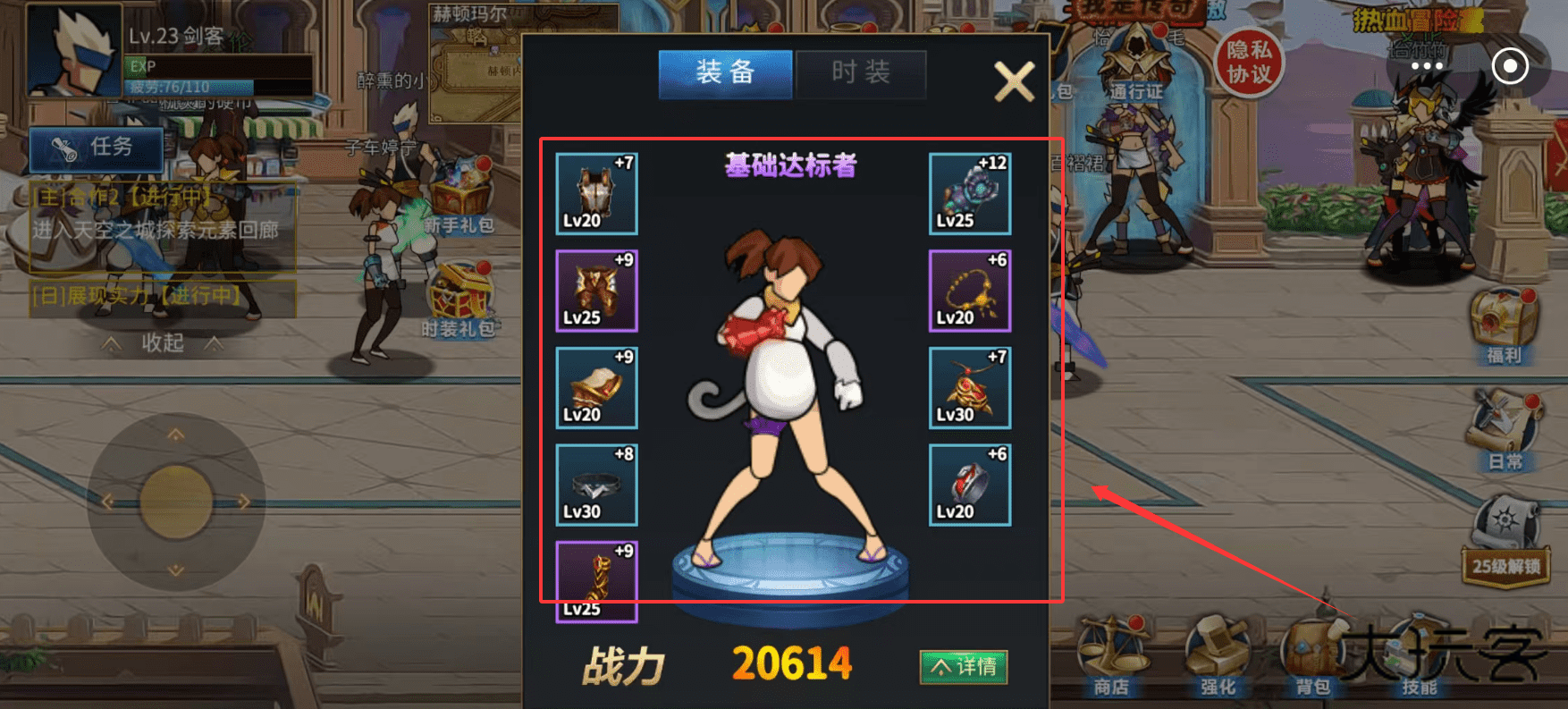 1、进入游戏先看左上角,那里有你的角色等级和疲劳值,记得完成下方任务能快速升级呀。