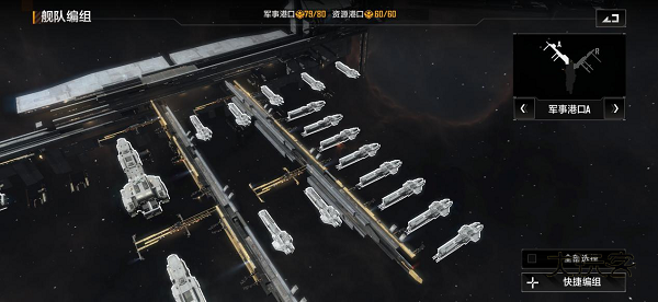 上图是游戏内的基地页面,主要由资源管理、基地防御、战舰生产、舰队管理、舰队编组以及辅助功能六个板块组成。