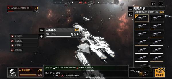 战斗界面主要的构成就是战况信息和舰船列表,战况信息就是中间部分的聊天框,可以实时获取敌我的详细战况信息。战舰列表可以获取玩家战舰具体的损耗情况。