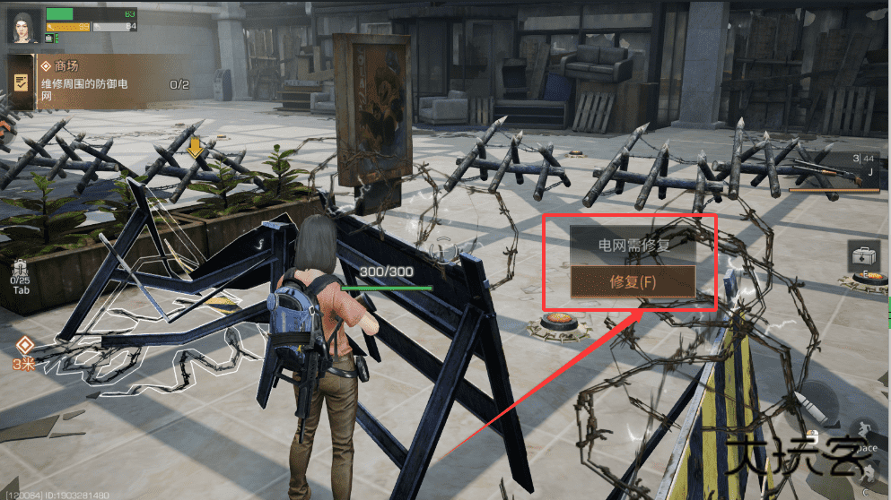 2、看到电网提示就按F修复,修的时候小心点周围怪物哈。