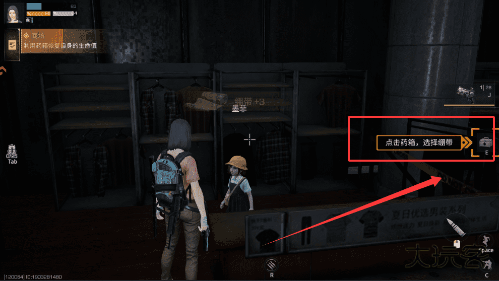 4、受伤了找药箱点开,选绷带就能慢慢回血啦。
