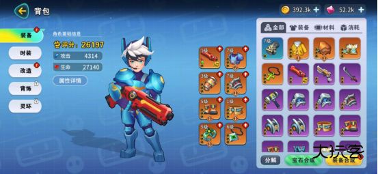 装备养成以提升品质为主,升级.宝石为辅。通过合成提升装备品质,后期套装打造消耗大量装备。