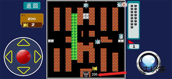 1、忠实复刻红白机时代的经典视觉风格,像素画面与场景布局均保留原版韵味。熟悉的坦克造型、砖墙纹理与基地老鹰图标,瞬间唤醒玩家的怀旧游戏记忆。