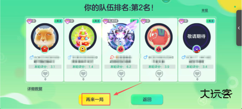 1、赛后模式选择 、队伍获得排名后,界面底部出现选项,点击标注的 “再来一局” 按钮开启新的对局。