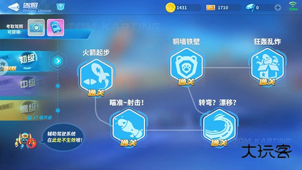 游戏中的驾照一共分为三个等级,即:初级、中级与高级。初级驾照需要玩家8级时开启,中级需要玩家13级时开启,而高级驾照要等到玩家17级时才能开启。每个等级的驾照考试比赛均为五个,只有通过前一关才会开启下一关,当通过最后一关时,玩家才能获得该等级的驾照。