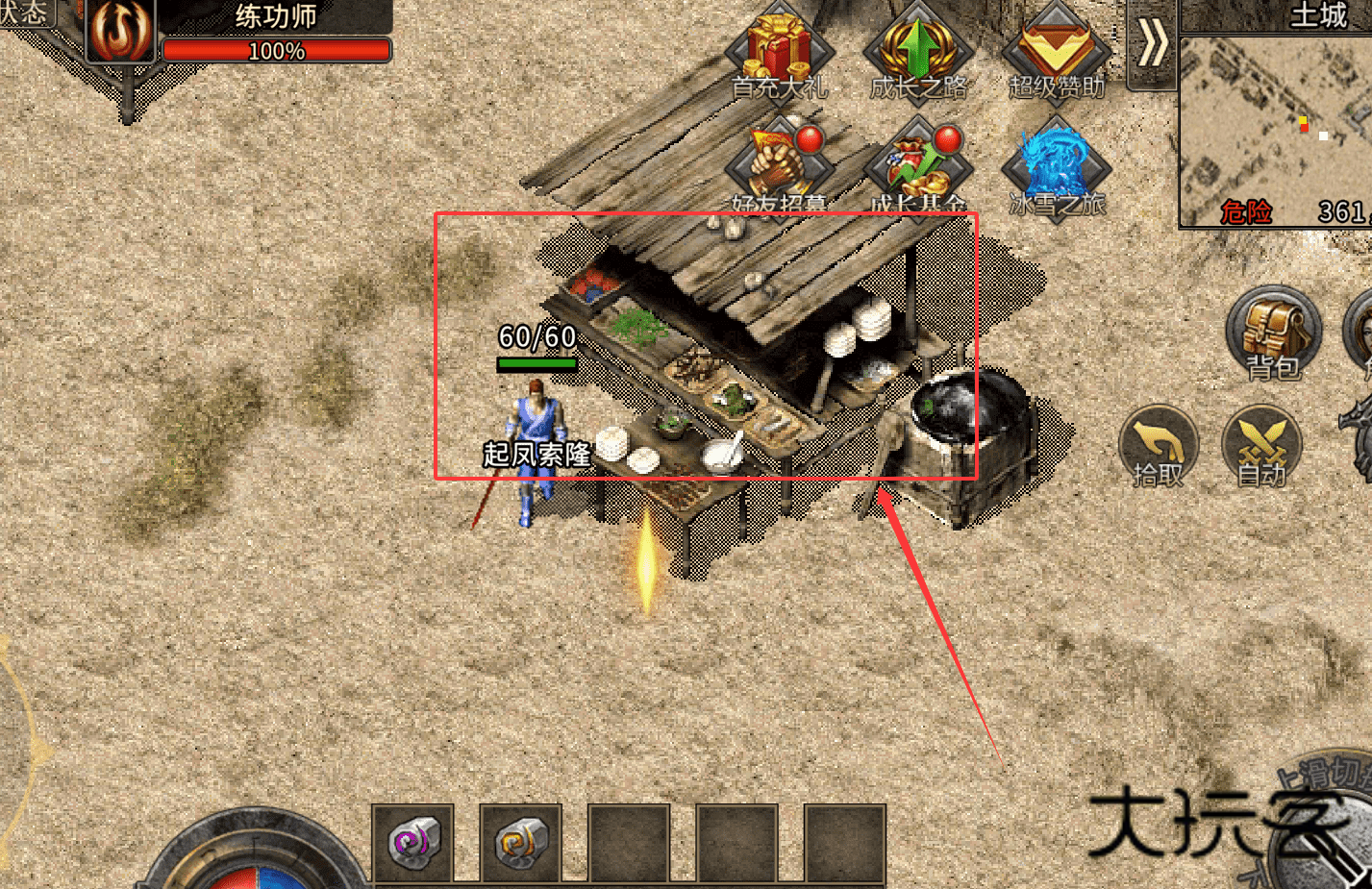 2、前期升级跟着主线走,在土城找到激情泡点NPC,能快速获得经验。