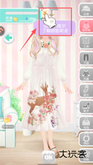 3、进入搭配页面后,按照提示点击 “了解顾客需求” 的按钮,就能知晓顾客对时装的具体要求。