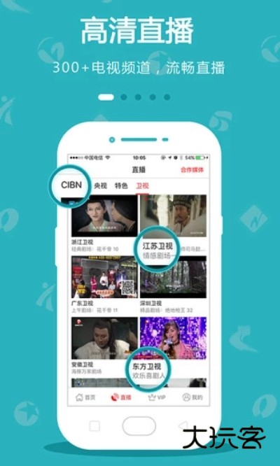 3、CIBN手机电视是一款稳定可靠的网络电视软件,可以免费流畅收看高清电视直播节目,收看最新最热门的电影大片和最新热播的电视剧,全球已有超过1.6亿用户选择了CIBN