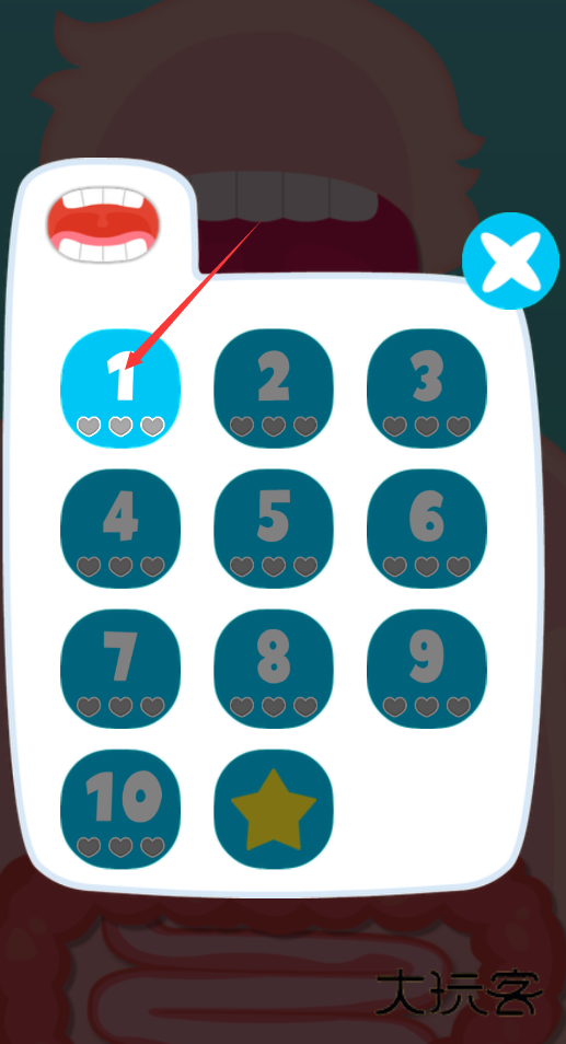 2.在主界面你会看到标有数字1到10的关卡序列,或者代表身体部位的不同图标。