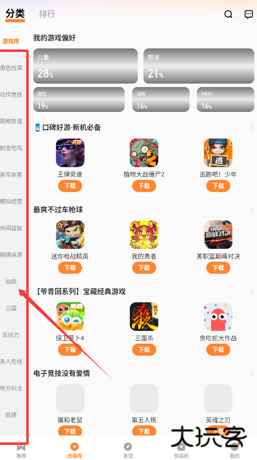 4、分类页改版,游戏类型一目了然;