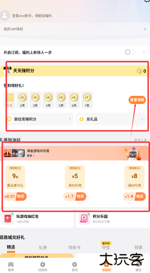 2、通过“领福利”板块能够每日参与积分任务并兑换多种礼券,平台还提供游戏内充值折扣与小额代金券,直接助力降低游玩过程中的消费成本。