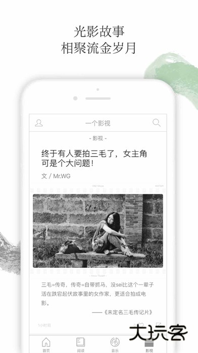 1、ONE · 一个是韩寒先生监制、原《独唱团》主创共同制作的一款年轻人文艺阅读应用,集合图片、文章、问答、音乐、电影内容,每日精挑细选,为你带来优质的作品