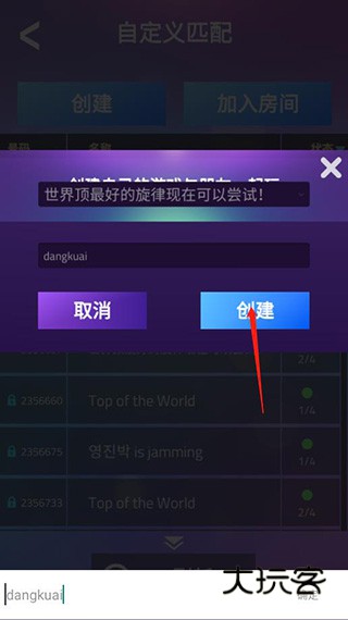 3、输入房间名后点击创建;