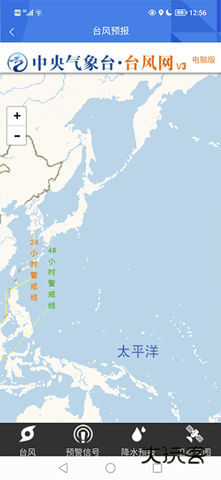 在这里就能看到台风的具体走向、预警信号、降水预报和卫星云图了。