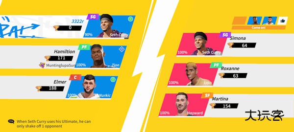 傅值,外线防守大闸之次闸,防守神技极限补防,撞停容易被抢断,防的外线呱呱叫,尤其是那些爱运球的,某布,某库,那叫一个难受,大招抢断多一次球权,真香。缺点,进攻端植物人,易防。