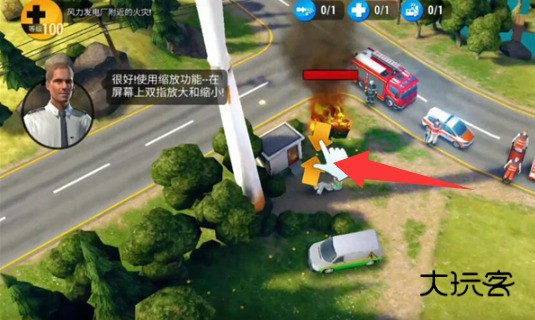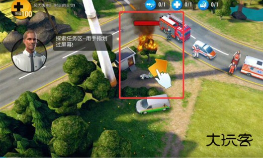 五:在选择好任务并进入后,你会看到在屏幕的左下角是你要派遣的救援车辆,在屏幕的中上方是你要完成的任务提示。