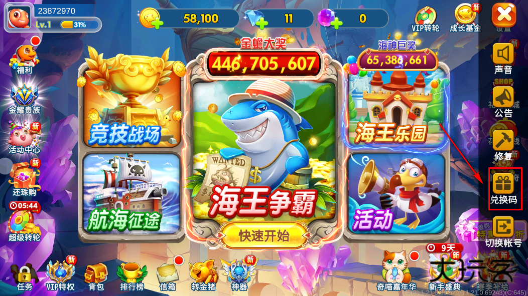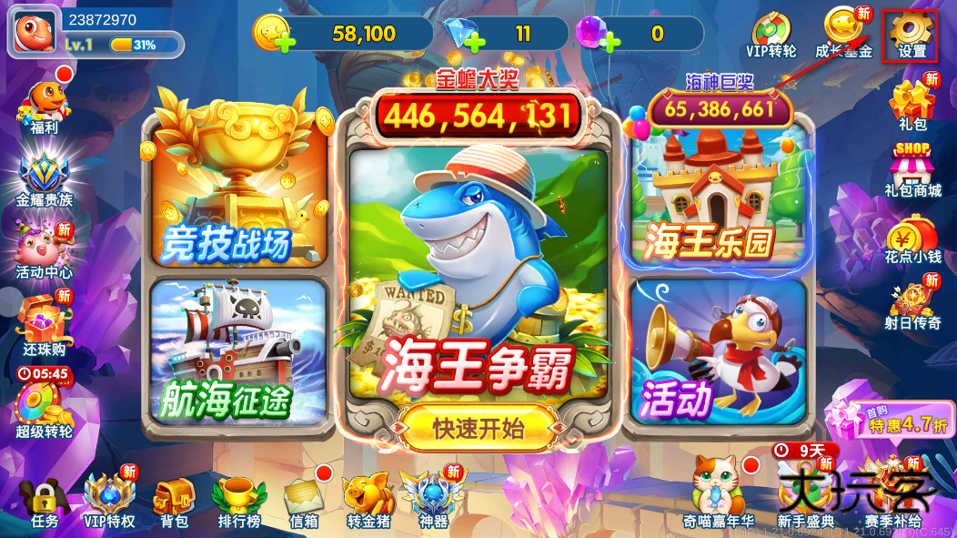 海王捕鱼这款经典的捕鱼手游设有猎鱼赛、天梯赛、大奖赛等多种捕鱼竞技赛事,鼓励玩家同场角逐,争夺捕鱼王座的最高荣誉。每日签到、任务、海量福利和道具持续放送,确保玩家天天登录、天天有奖,尽享极速爽快的射击乐趣。
