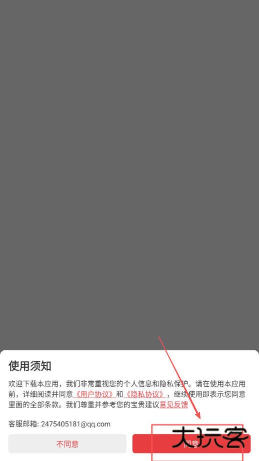 1、打开游戏后会看到游戏协议,得点一下同意,要是不同意的话,就没法继续使用游戏里的各种功能,这一步可不能跳过哦。