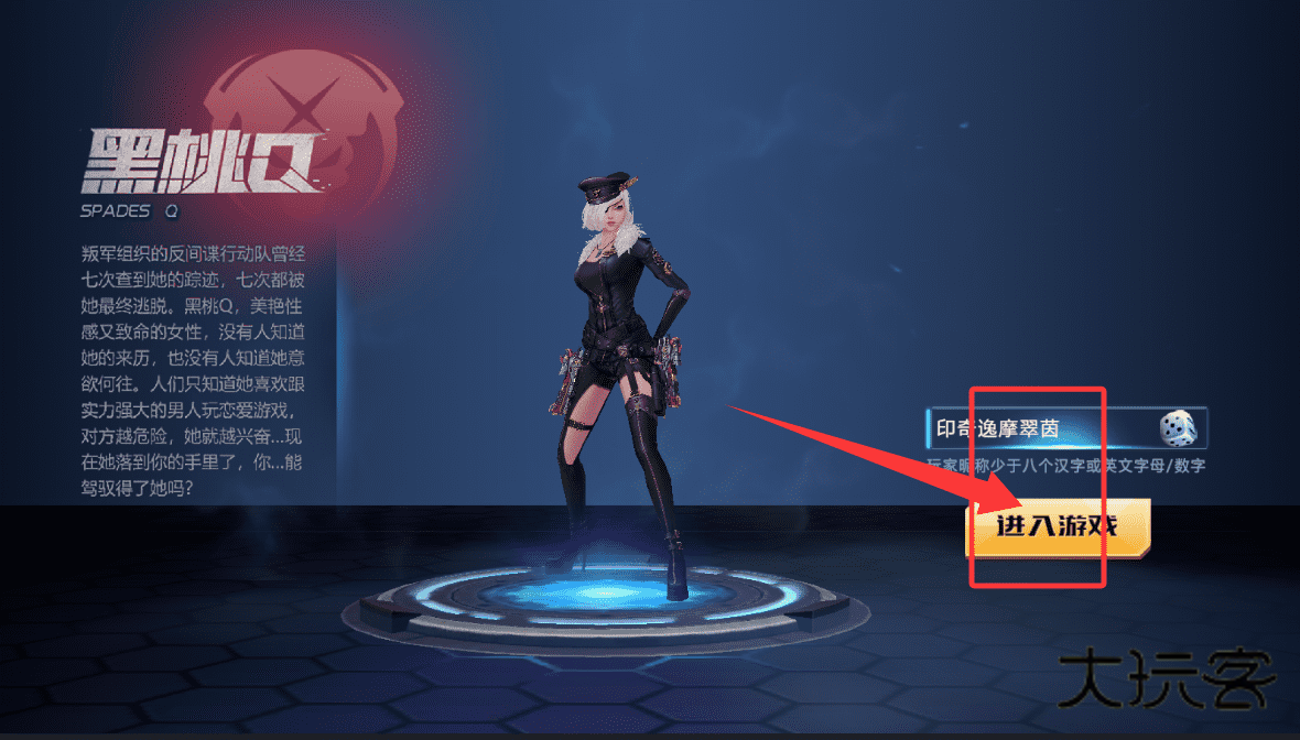 2、完成注册需设置角色昵称,限制在八个汉字或英文字母数字以内。初始剧情围绕神秘角色黑桃Q展开,她多次摆脱叛军追捕,擅长周旋于危险人物之间,其背景与意图构成初期核心悬念。