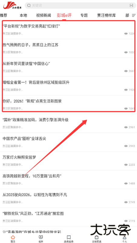 4、寻找深度评论文章可切换至彭城e评板块,还能用搜索栏输入关键词来查找内容。