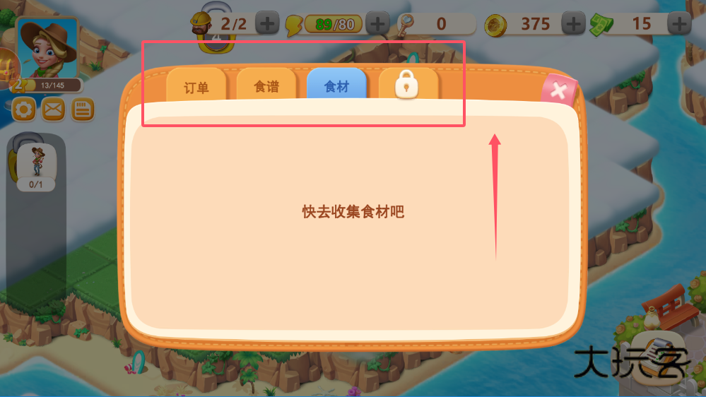 2、重点关注订单系统中的任务要求,完成角色订单可以获得钥匙和金币等奖励,如果当前没有可接订单,你可以先进行食材收集或菜品制作,为后续任务提前做好准备。