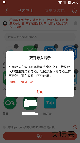 2、点击导入应用、游戏