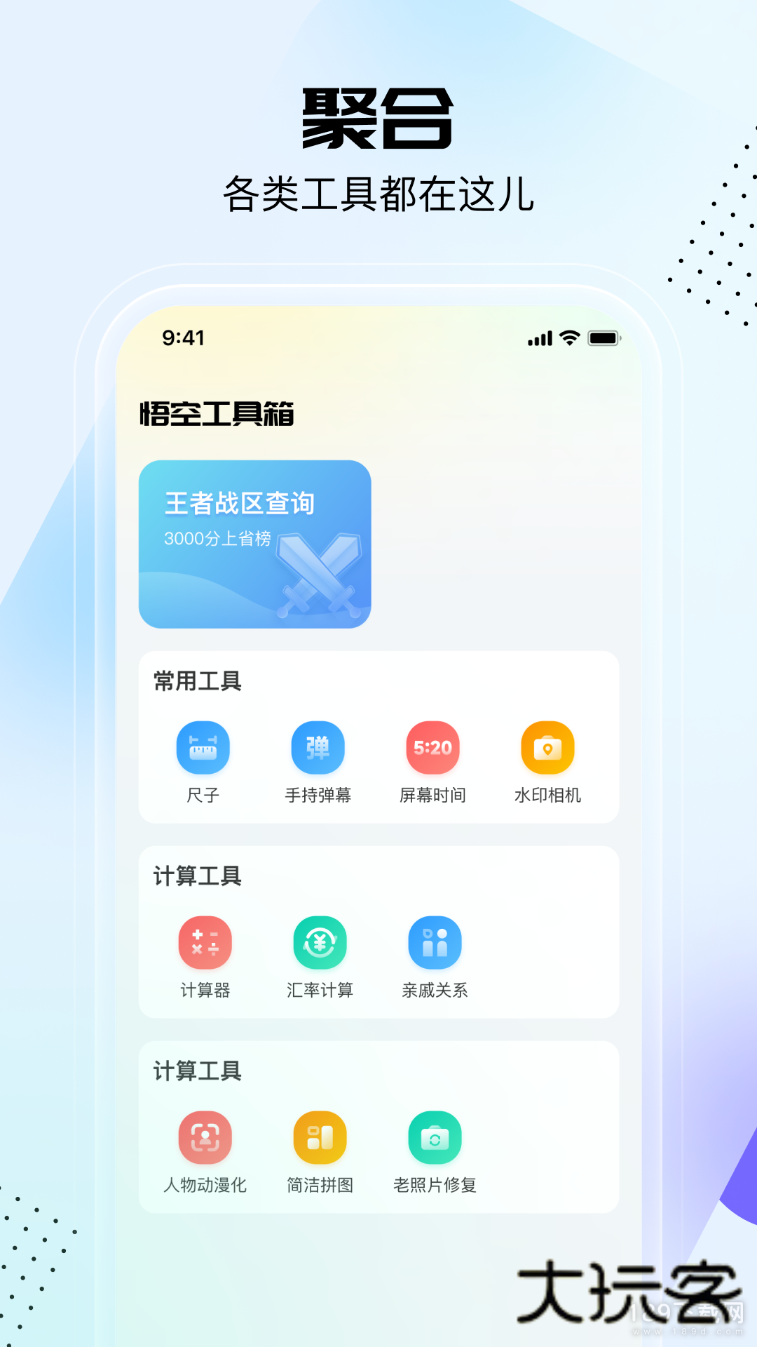 2、悟空工具箱是一款可以随时让手机变得更便利的手机软件,不同的大小工具都完全覆盖了,类型划分非常的全面,可以涵盖很多地方,可以让你的手机更加的方便快捷,使用起来更加的轻松