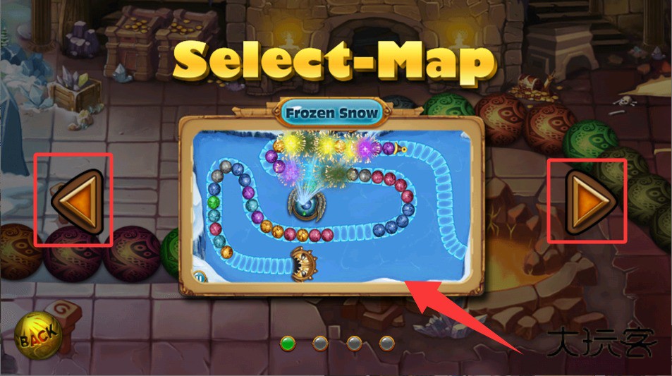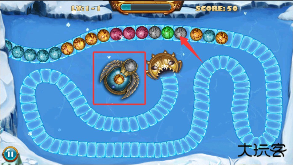 游戏创意虽较简单;但难度不凡。屏幕中的石头青蛙会吐出颜色各异的珠子,与沿着一条轨迹运行的一串珠子相接,一旦三颗或以上的珠子连在一起,则这几颗珠子即可消失。我们所要做的就是尽量消除珠子,以防止珠子滚入轨迹尽头的洞中。珠子落入洞中即为输掉,青蛙将减少一次生命。一共有3次生命机会。在Advanture模式中,每累计到50000分即可获得一只青蛙。